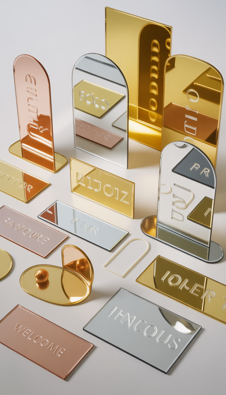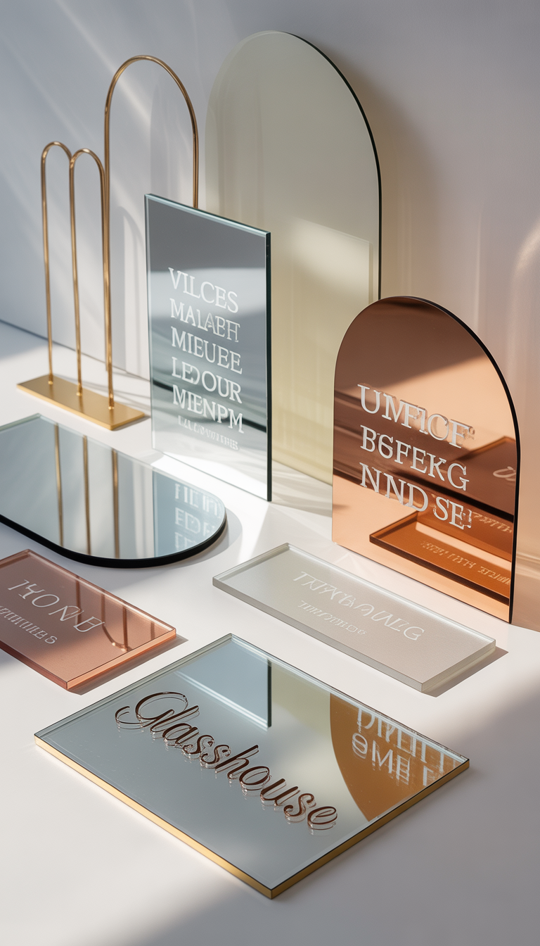An elegant mirror acrylic guestbook sign designed to invite guests to leave a note while adding a beautiful finishing touch to your table setting.